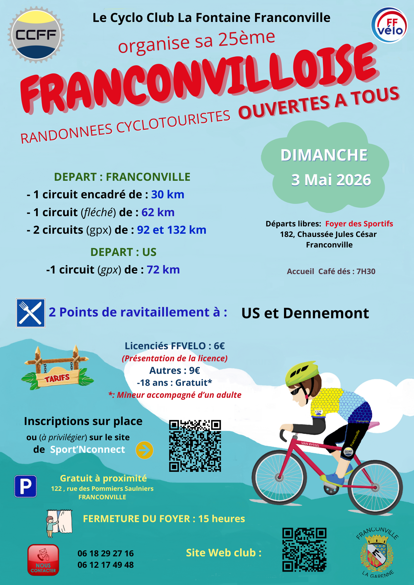 *Sur le parcours de 130 km non fléché, une zone de 74 kilomètres est parcourue sans ravitaillement. Au départ de Franconville : deux barres de céréales seront remises aux cyclos pour s’alimenter sur ce parcours.
