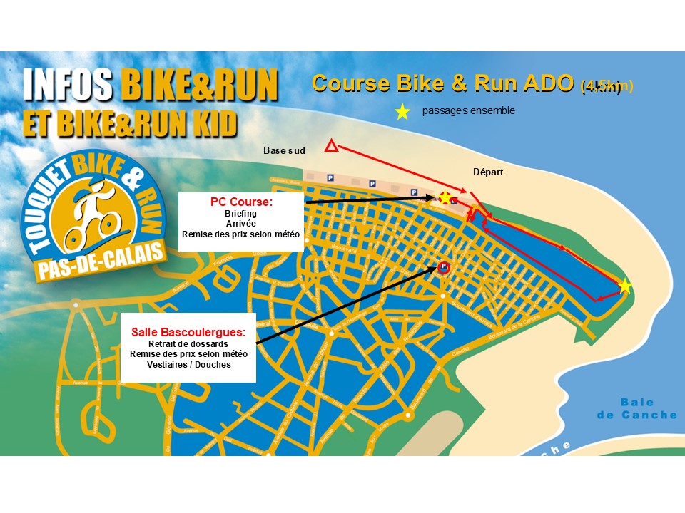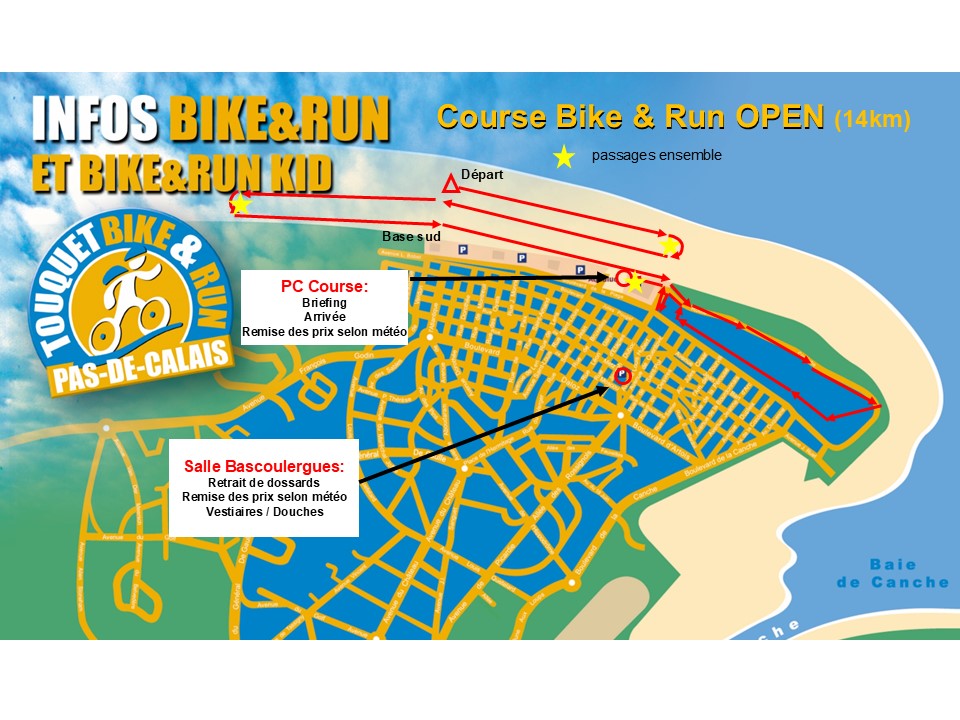 La prochaine édition du touquet bike&run aura lieu le samedi 01 novembre avec 3 courses au programme: une épreuve non chronométrée "famille", une course pour les jeunes à partir de 10 ans sur 4.5km et une épreuve open à partir de 16 ans de 14.5km.